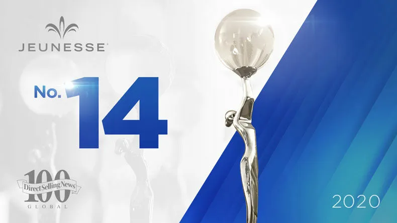 Jeunesse was honored for its top-15 ranking April 1 during a video broadcast of the 11th Annual Direct Selling News Global 100 Celebration. The company was also recognized as one of only 11 companies to be named a Best Places to Work in Direct Selling honoree.