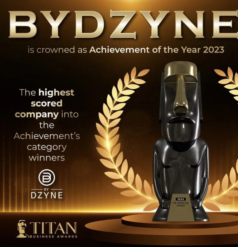 ByDzyne is capping off its unprecedented fourth year of inception by bringing home a prestigious Titan Business Award as an acclaimed Category Winner for the 2023 Achievement of the Year, underscoring the company’s excellence in growth, international expansion, and global influence.